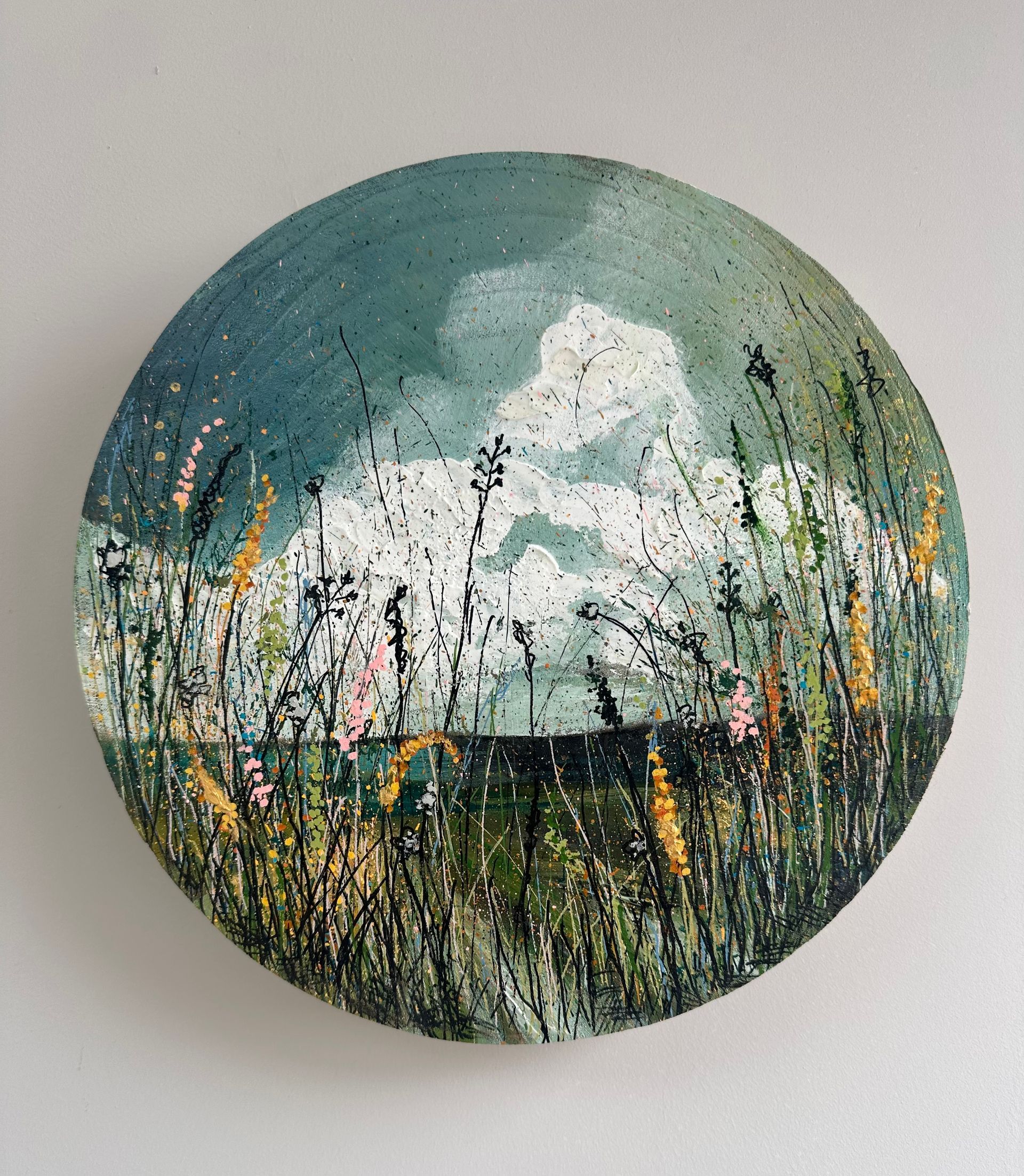 Whether creating a brooding seascape or a cheeky pop culture homage, her practice remains rooted in genuine emotion and instinct: “My art is the direct and intuitive result of however I’m feeling on each new day that I enter my studio.”