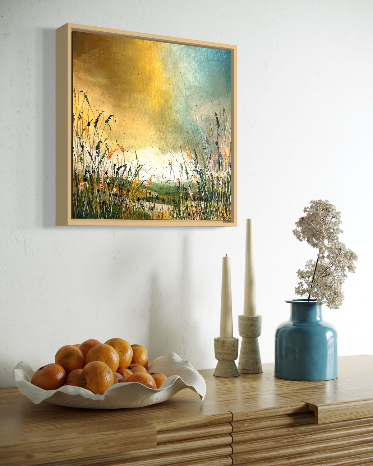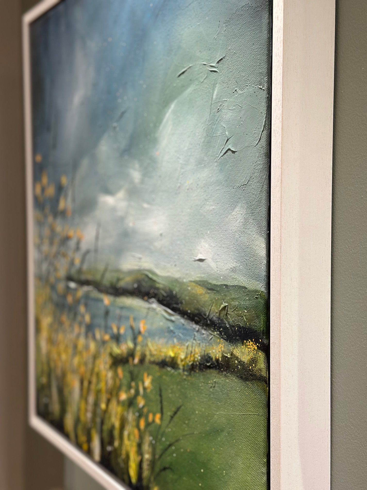 Her preferred mediums are acrylic and oil, with her oil paintings often embracing a sculptural quality through heavy impasto techniques that add depth, movement, and drama. Marcia’s landscapes and seascapes are deeply personal, often drawn from childhood memories of the rugged coastline and mountainous beauty of North Wales. These pieces aim to evoke a strong sense of presence and narrative — a moment held in time.